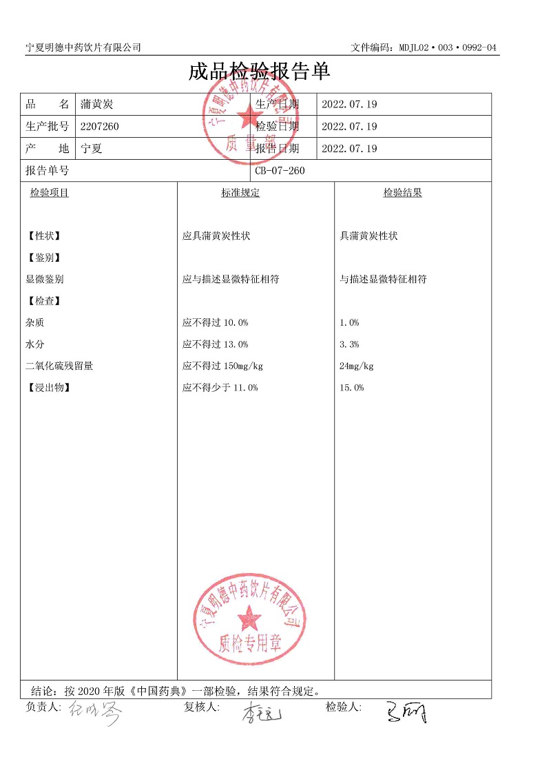 2207260蒲黃炭