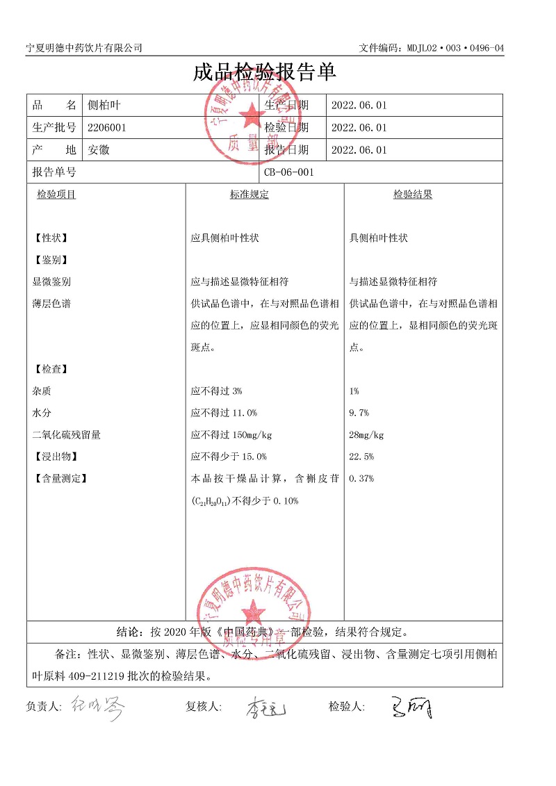 2206001側(cè)柏葉